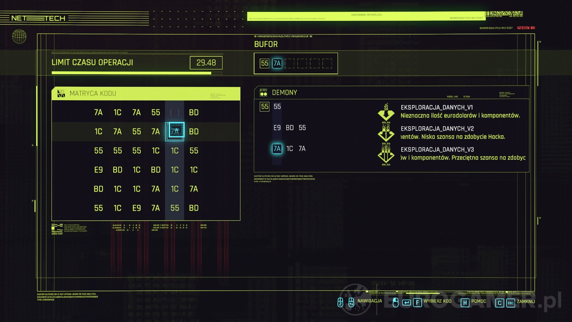 .Wanneer je een Breach Protocol start, moet je eerst de hacking minigame winnen. Je moet de Daemons installeren binnen een tijdslimiet. Deze tijd begint af te tellen zodra je je eerste zet doet.