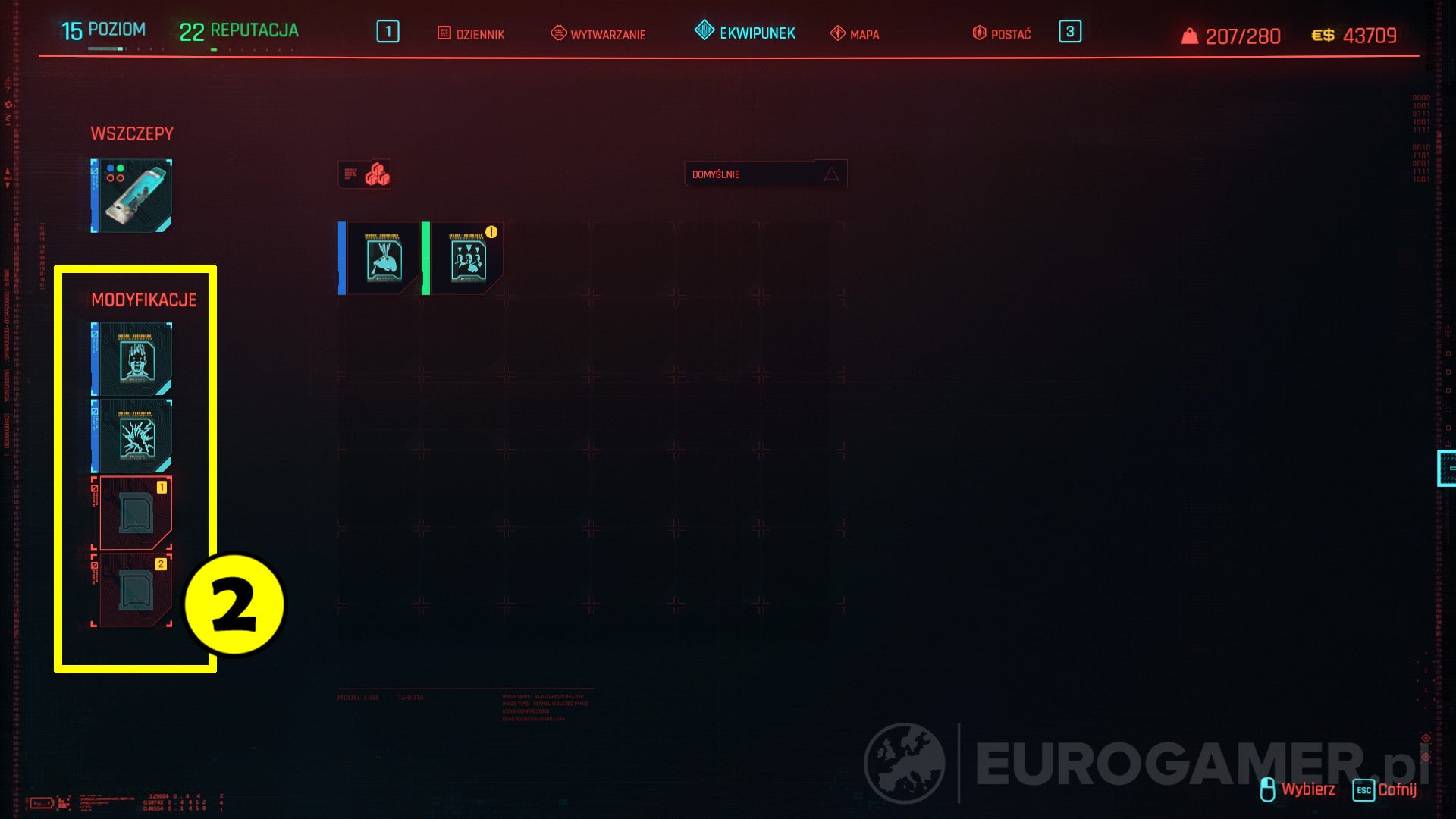 Om naar je Cyberdeck te kijken en de hacks te vervangen, kies je Cyberdeck (1) in je inventory menu.
