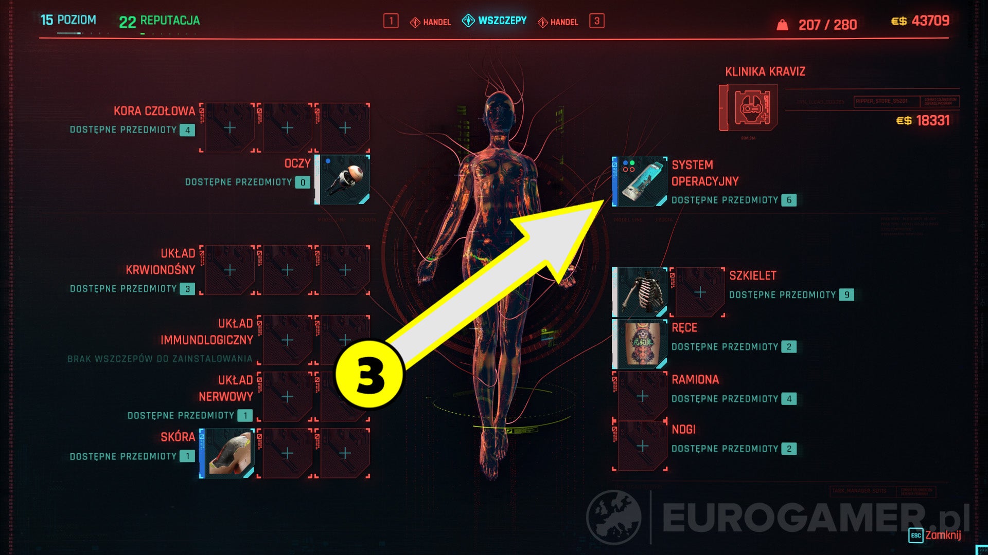 Praat tegen de Ripperdoc en ga naar Operating System (3).