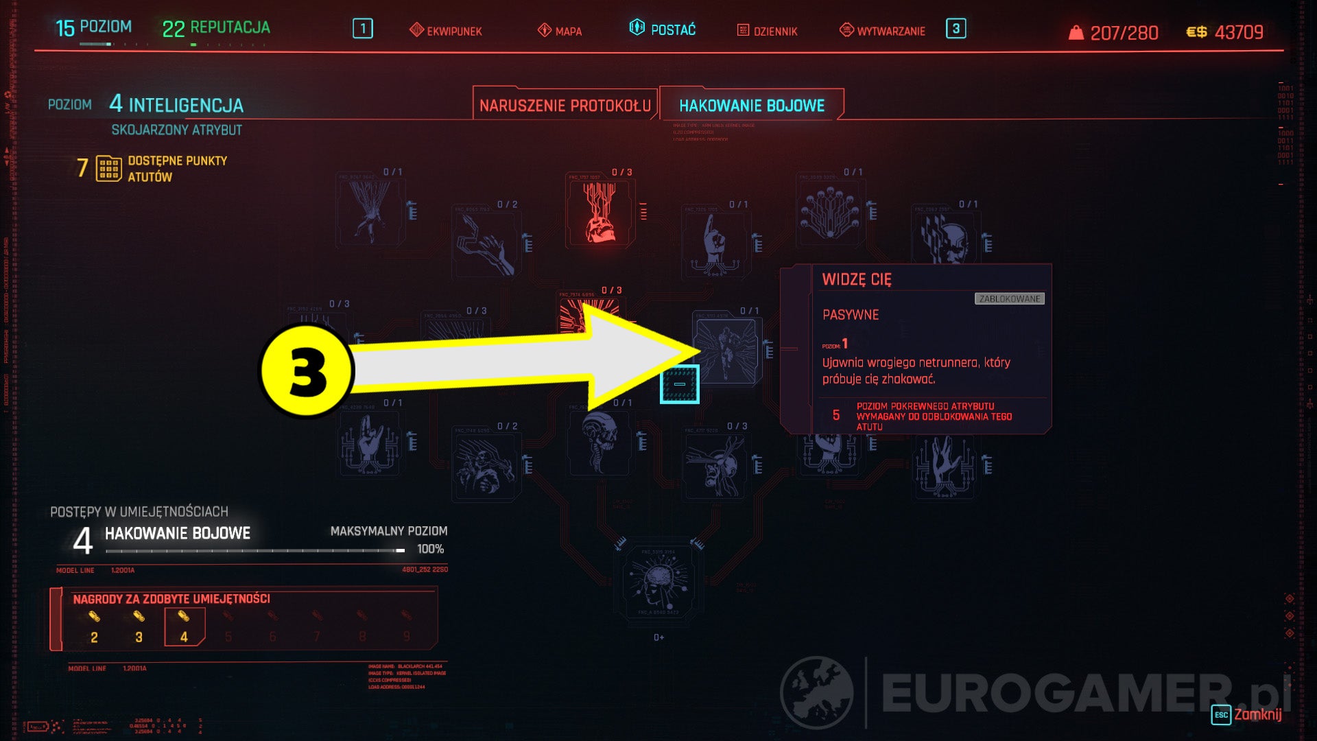 Als je de Intelligence Attribute naar level 5 hebt gebracht, is het misschien wel de moeite waard om de investeren in de 'I Spy' Perk. Met deze perk zie je meteen de locatie van een vijandelijke netrunner.