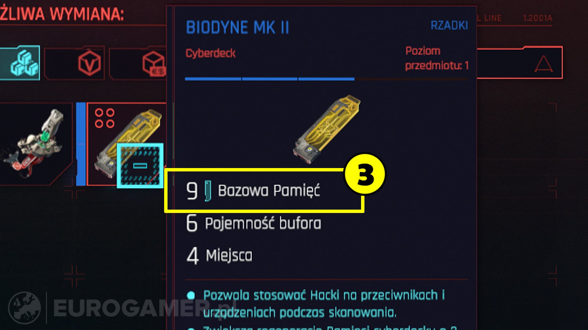 - De snelste methode is om simpelweg een nieuwe Cyberdeck te kopen van een Ripperdoc. Let op de beschrijving van het item. Deze zegt altijd wat de basiscapaciteit RAM (3) is van het Cyberdeck. Sommige Cyberdecks kan je pas kopen als je een specifiek level in Street Cred hebt.