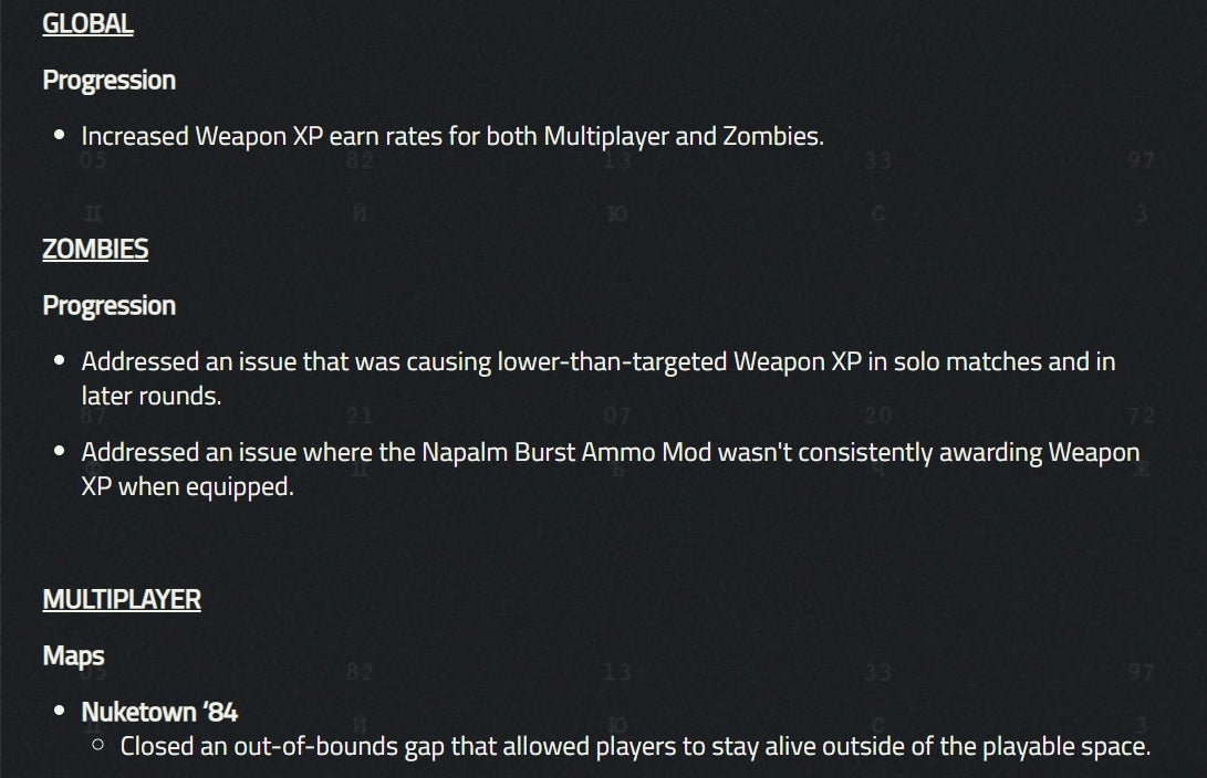 Daarnaast pakt Treyarch ook een glitch in de Zombies-mode aan. Die zorgde ervoor dat je 'minder dan de vooraf beoogde XP' kreeg na een wedstrijd. Om alle spelers te bedanken voor hun geduld, plant Treyarch in december verschillende 2x Weapon XP-evenementen.
