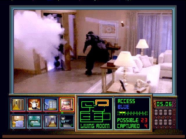 Aah, het glorieuze tijdperk van de Sega Mega-CD, toen elke ontwikkelaar zich verplicht voelde om de nieuwe CD-ROM's met korte videosequenties op te vullen. Ook in Night Trap ben je meer bezig met filmpjes kijken dan met knopjes drukken. Als lid van het Sega Control Attack Team - een naam die schreeuwt om een saturday morning cartoon - is het jouw taak om een groepje tieners die een feestje bouwen in een ouderlijk huis te beschermen. Om hen in de gaten te houden, wissel je steeds tussen footage van verschillende bewakingscamera's die in de kamers van het huis geplaatst zijn.