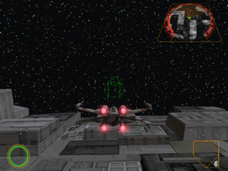 Het schieten met blasters en zwaaien met lightsabers wordt af en toe ook onderbroken door levels met coole voertuigen zoals Landspeeders en X-Wings. De laatste missie, waarbij je de Death Star moet vernietigen en het opneemt tegen Vader's TIE-Advanced, is een prachtige demonstratie van Mode-7.