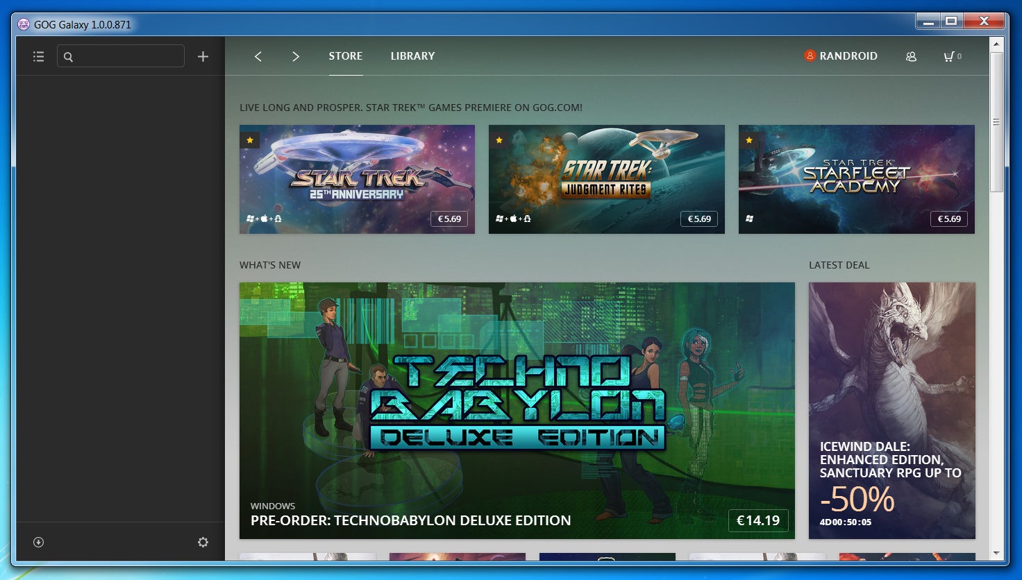 Om van GOG Galaxy gebruik te maken, heb je een GOG-account nodig. Zodra je de client opstart en daarmee inlogt, kom je op de winkelpagina terecht. Hier vind je de nieuwste games die aan het GOG.com-assortiment zijn toegevoegd.