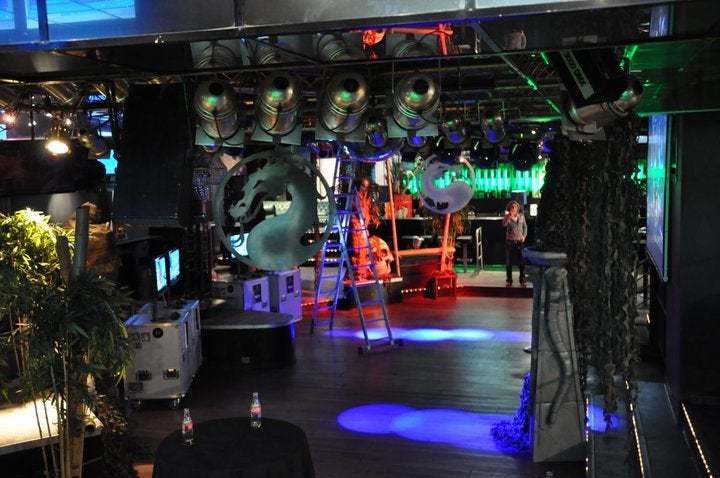 Ik was terecht gekomen in een binnenshuis gefabriceerde jungle, inclusief demonen, gigantische Mortal Kombat logo's hangend aan een draadje en talrijke banners van het aankomende vechtspel. De buiten proportionele discobal, kleurrijke spots, ontelbare flessen cava en DJ's die de muziek telkens weer een subtiel tikkeltje luider zetten leken haast uit de toon te vallen. En dan waren er natuurlijk nog de set-ups met PlayStation 3-demo's van het spel, want hoe je het ook draait of keert: Hét doel van de avond was uiteraard het verkiezen van een Belgische Mortal Kombat kampioen, de man die zou doorstoten naar de Europese finale in Birmingham.