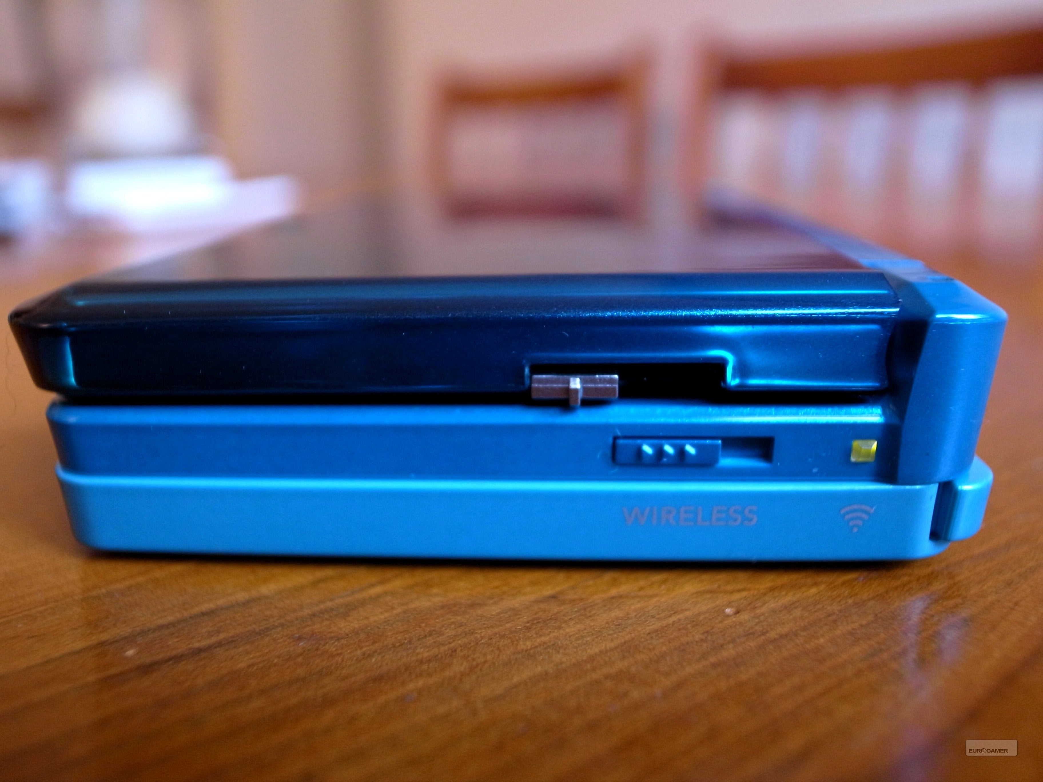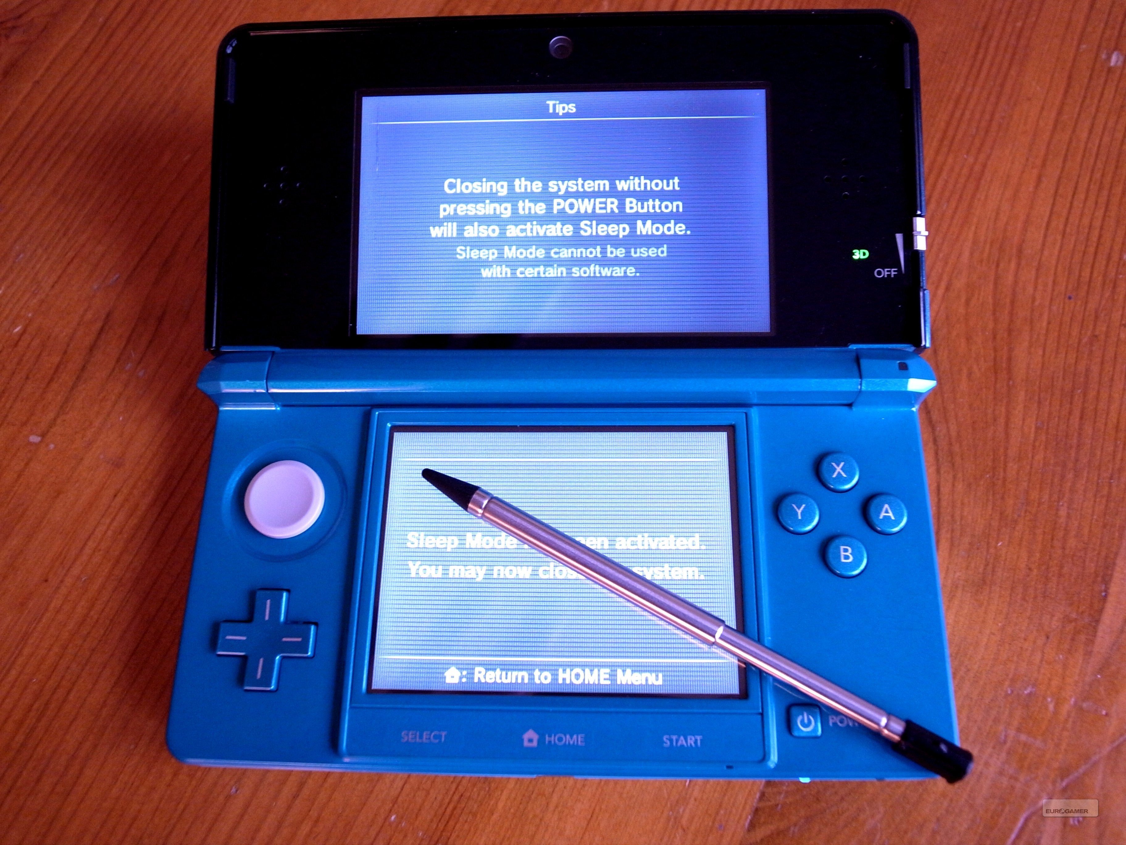 Aan de rechterkant van de 3DS zijn alweer twee schuifjes te vinden, en beide zijn ze erg interessant. Aan de zijkant van het bovenste scherm zit de befaamde 3D-regelaar. Hiermee kun je zelf instellen hoe intens de 3D-capaciteiten van de 3DS naar voren moeten komen. Hoe hoger het schuifje staat, hoe intenser 3D zichtbaar zal zijn. Schuif je de slider helemaal naar beneden, dan geeft je 3DS enkel en alleen 2D-beelden weer. Handig om weten is dat 3D op het maximum instellen meer energie van je handheld vraagt, en je dus sneller je batterij moet gaan opladen. Daarnaast is er aan de rechterkant een slider te vinden waarmee je de 'wireless' functionaliteit van je 3DS kunt inschakelen. Ook daarover later meer in dit artikel.