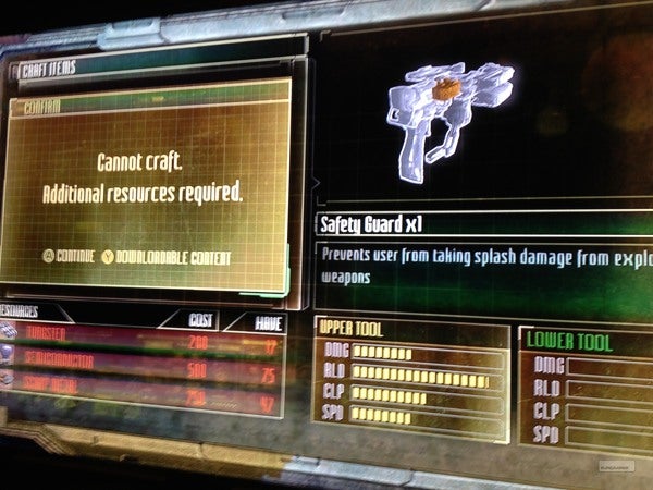 De survival horror game kent een uitgebreid craftingsysteem. ZO kun je compontenten verzamelen om je wapens sterker te maken. Maar als je daar geen zin in hebt, dan kun je ze ook in pakketjes kopen op de Xbox Live Marketplace of the PlayStation Store.