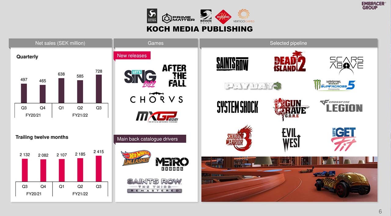 Daarnaast zie je dat de presentatie een afbeelding bevat waarop je alle eerder uitgebrachte en nog te releasen projecten van Koch Media Publishing ziet. Bij die projecten horen games als Saints Row The Third Remastered, Payday 3 en dus ook Dead Island 2.