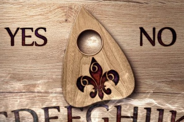 Via een ouijabord?
