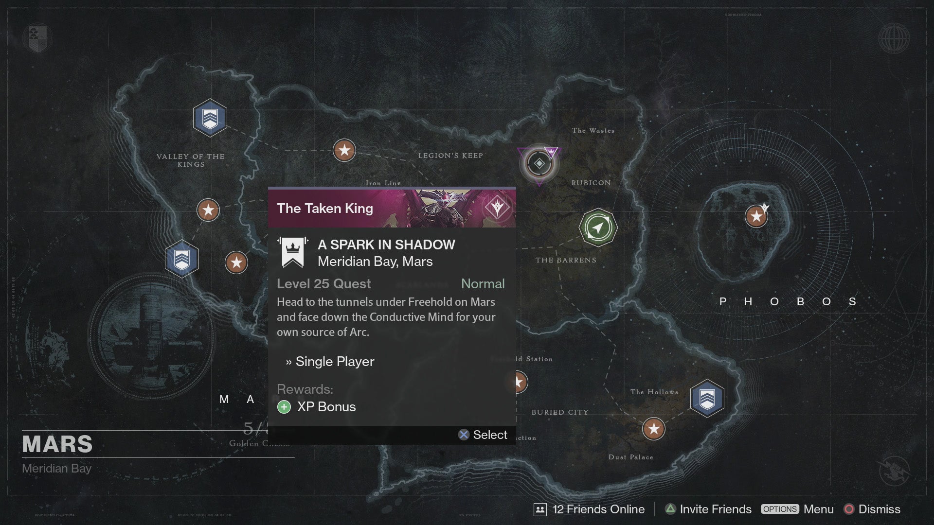 Ga naar Mars en activeer de level 25 A Spark in Shadow quest. Je komt aan in de Buried City. Gebruik je Ghost om te navigeren en vecht je een weg door de verschillende vijanden die je onderweg tegenkomt.