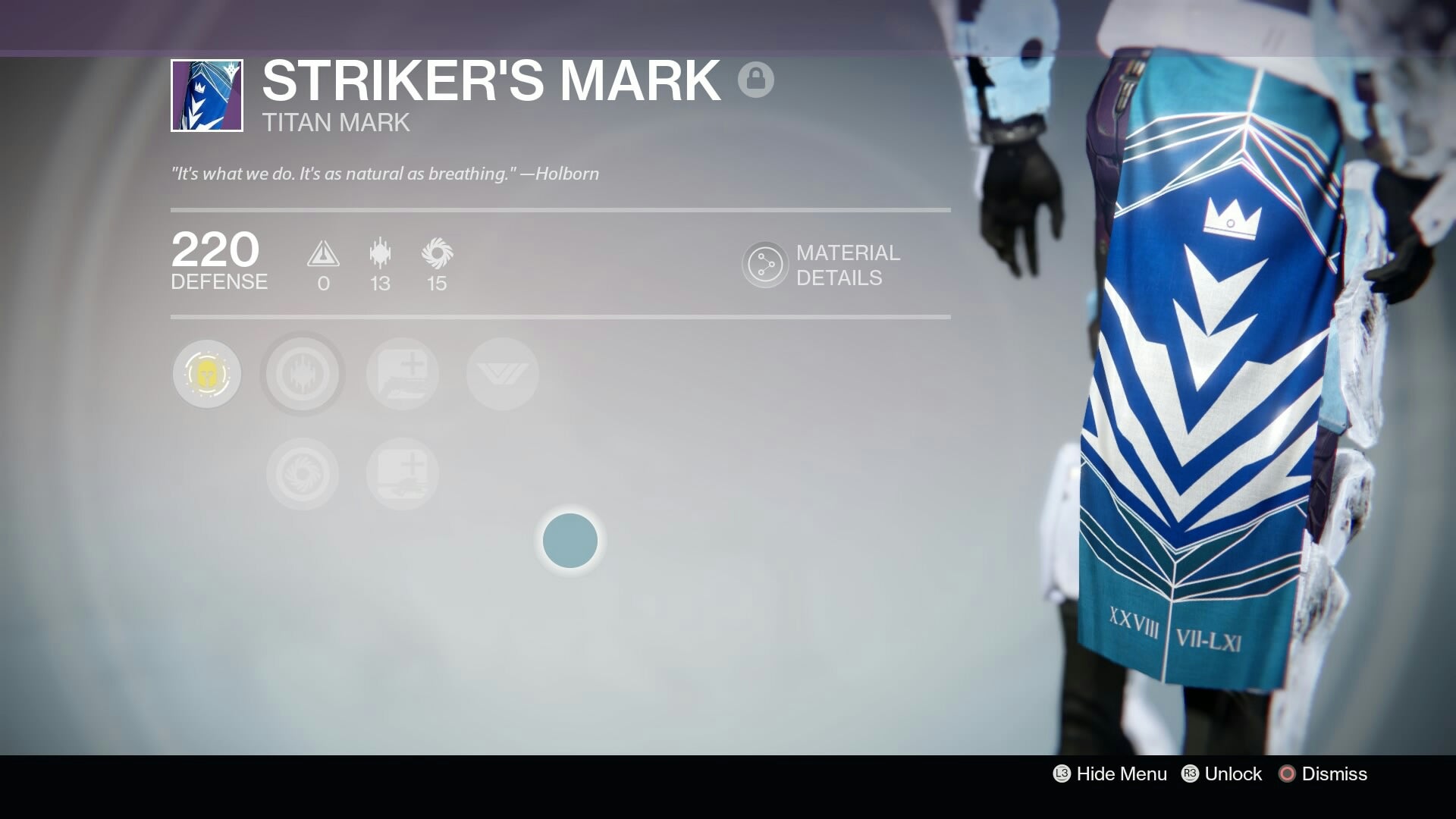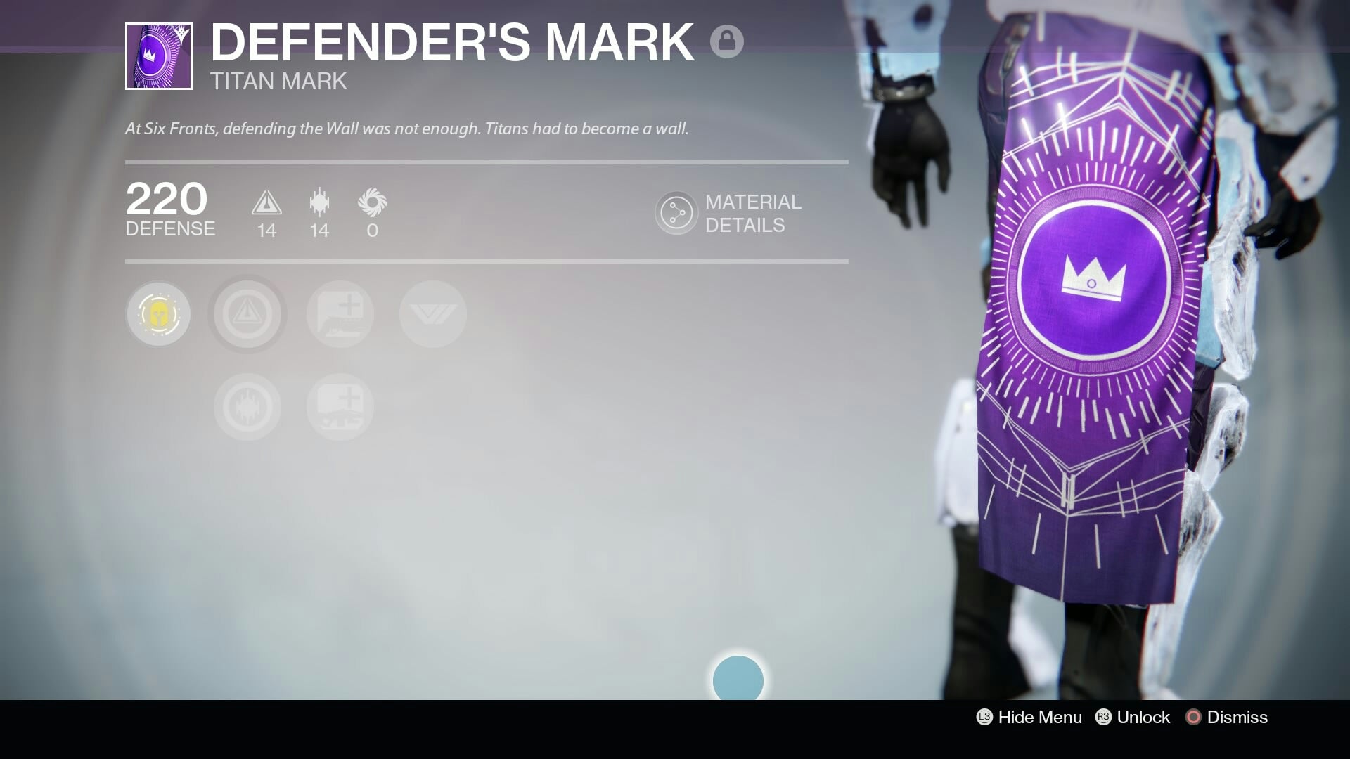 Unlock de Defender’s Mark, Striker's Mark en Sunbreaker's Mark.