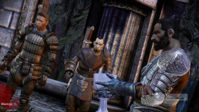 Ouch. Laat mij maar meteen zeggen: dik mis. De Dragon Age die nu op mijn bureau ligt is prachtig. Niks fotorealisme. Heel lichtjes cartoony is het, net dat beetje overdreven om de luisterrijke wereld Ferelden in de verf te zetten. Personages hebben net iets te grote handen, zelfde wapens; ook de omgevingen, de gebouwen, zijn dat kleine beetje onpraktisch ontworpen, alle aandacht gevestigd op het epische. Zelfs een bouwvallig bergdorpje op een klif van rode klei is een dramatisch middenstuk. De sfeer is groots, en er is over nagedacht. Overal in Ferelden steken bouwvallige ruïnes van het oude keizerrijk Tevinter uit de grond, nog steeds in gebruik door de analfabeten en barbaren die er nu de plak zwaaien. In Ferelden bedienen de mensen zich, zoals de barbaren uit onze contreien na de val het Romeinse Rijk, van de snel afbrokkelende mirakels van een beschaving die misschien meer het redden waard was.