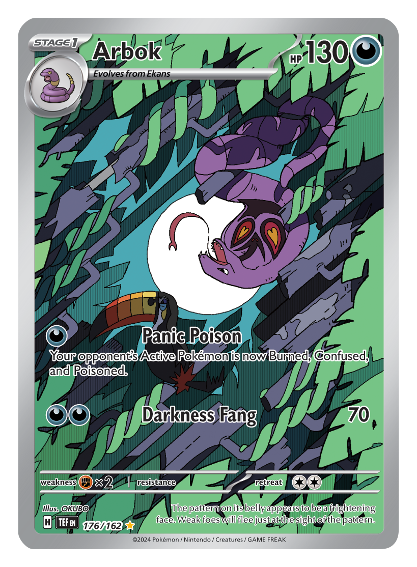 Twee nieuwe kaarten uit de Pokémon Trading Card Game expansion Scarlet & Violet - Temporal Forces zijn onthuld. Het gaat over Ekans en Arbok.