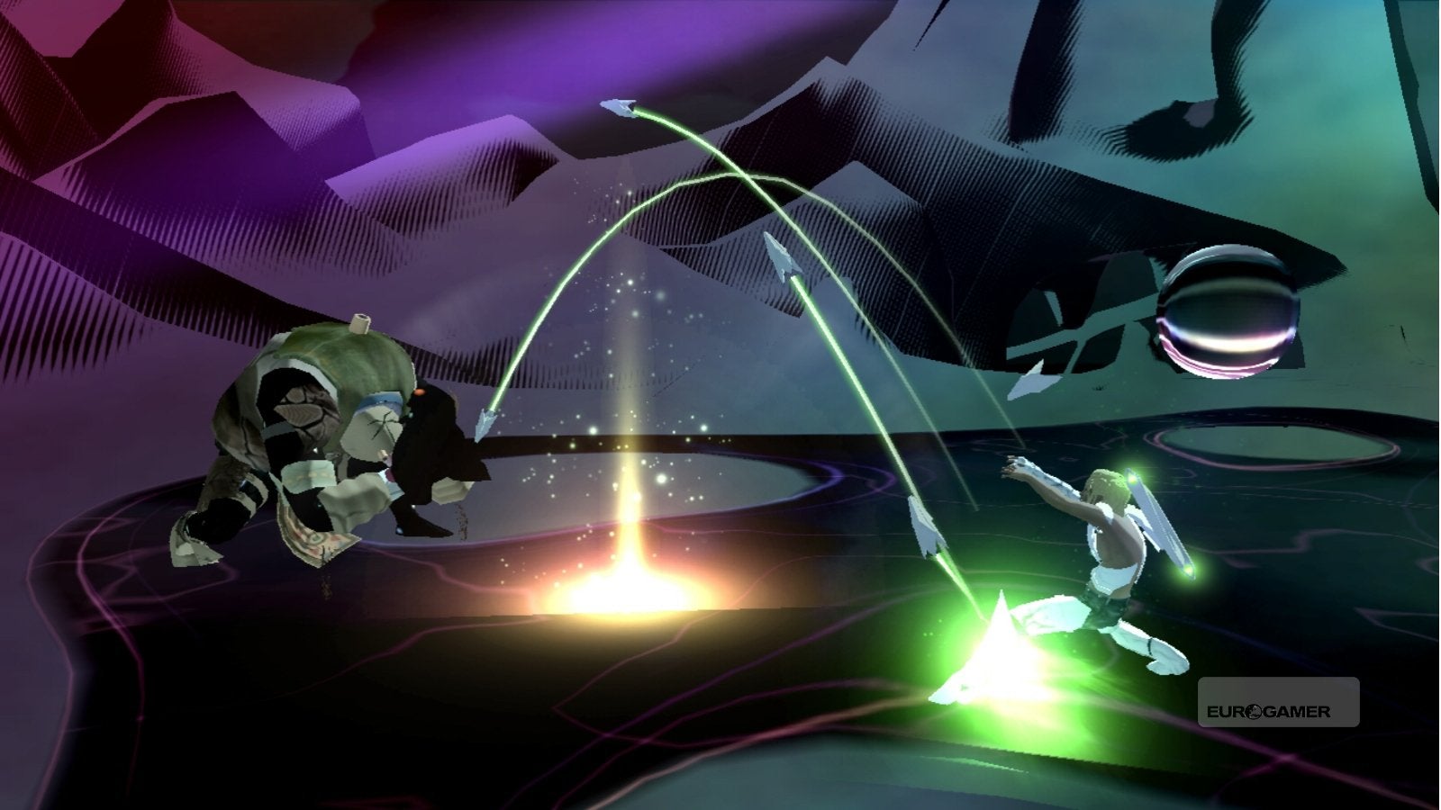 De Arch is een gebogen zwaard met als extraatje dat je er ook een korte tijd mee kunt zweven. De Gale is een soort ring bestaande uit iets wat er uitziet als darts pijltjes. Deze kun je in sneltempo op je vijand afsturen. Dit is tegelijk ook het lichtste wapen van de drie. En dit brengt ons bij het laatste wapen, de Veil. Hoewel dit het traagste en zwaarste wapen is, brengt het wel de beste bescherming en de zwaarste schade aan de vijand toe. Extra is nog dat elk wapen onrein wordt wanneer je het te lang gebruikt. Een onrein of corrupt wapen is minder krachtig. Je zult dus regelmatig het wapen terug moeten zuiveren, purifying heet dat.