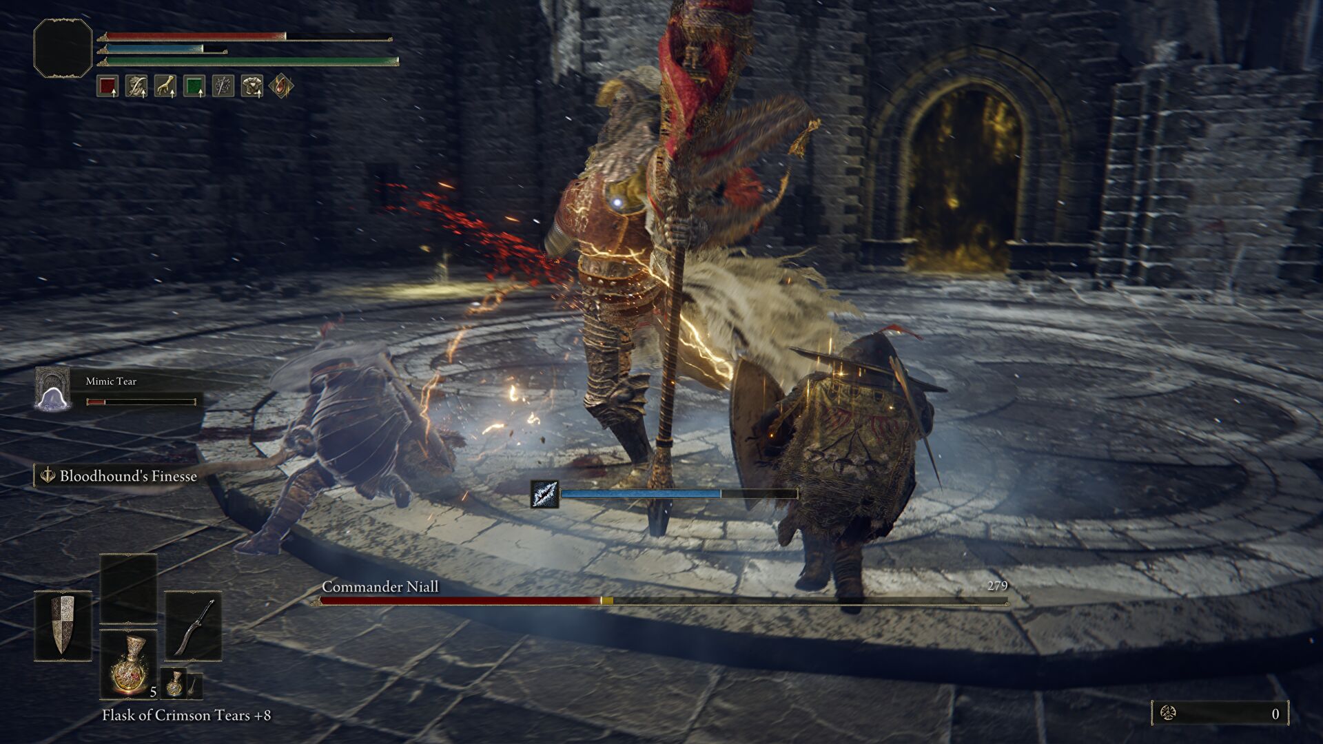 Commander Niall roept twee spirit knights op tijdens het gevecht, en wordt alleen maar sterker wanneer je ze verslaat. We raden dus sterk aan om hem een koekje van eigen deeg te geven, en zelf ook een spirit of andere speler op te roepen voor dit gevecht.
