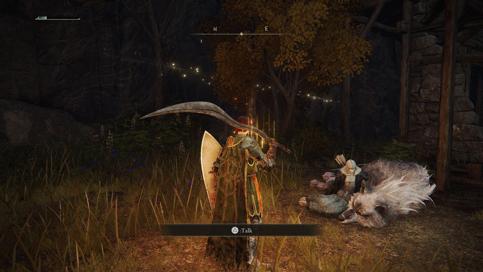 Na het verslaan van deze Bloodhound Knight, neem je niet de portal naar het begin van de grot maar blijf je verder gaan. De grot komt uiteindelijk uit aan de andere kant van de berg bij de Slumbering Wolf’s Shack.