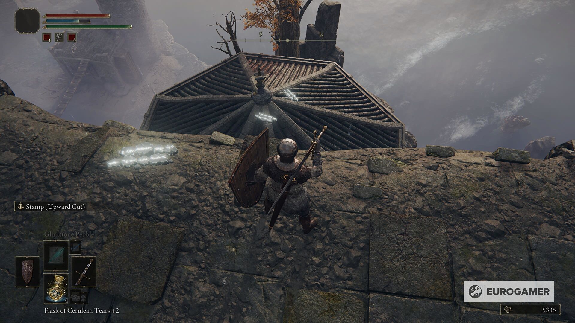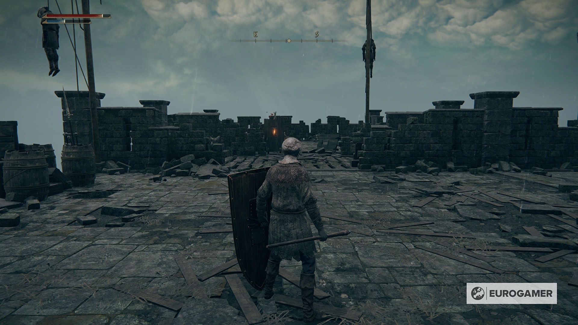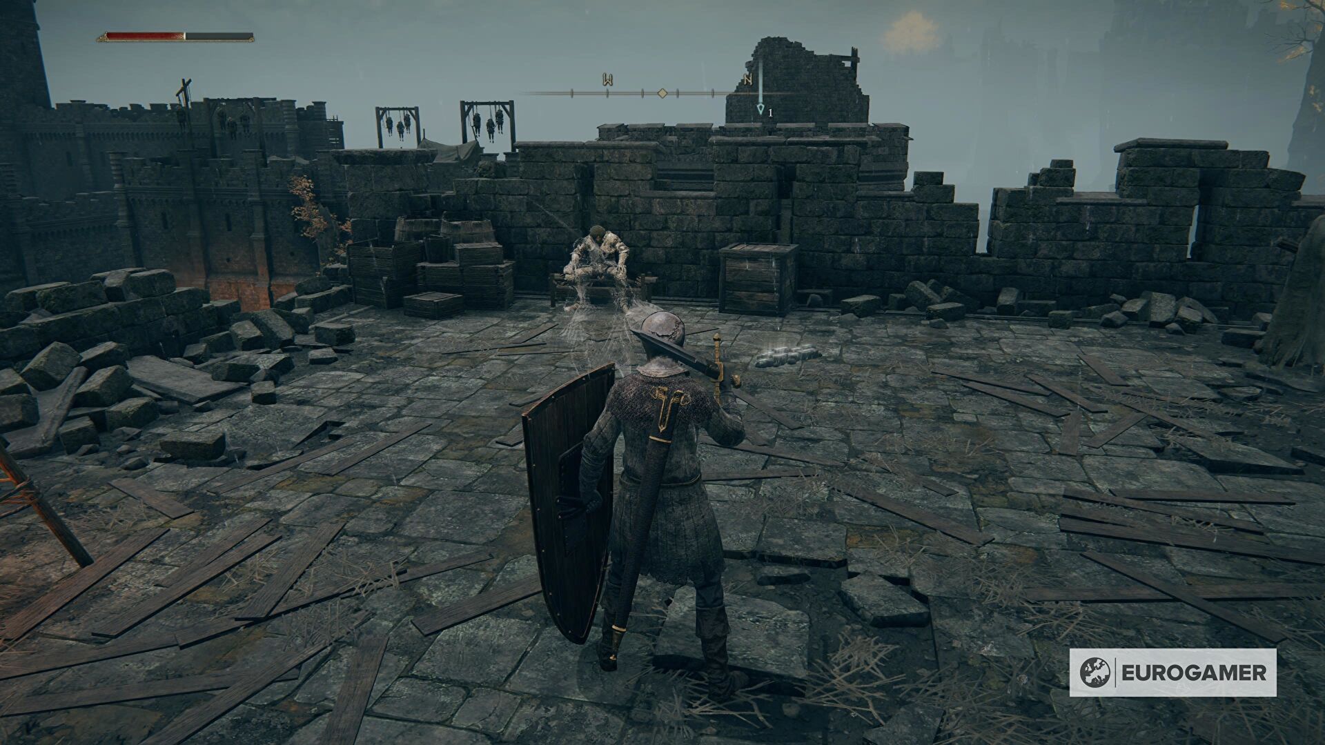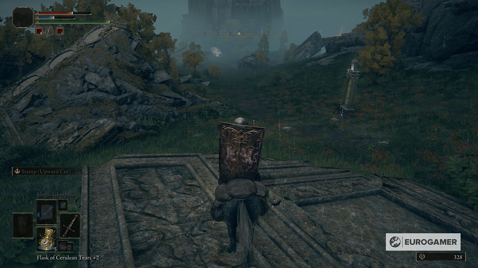 Nu is het moment aangebroken waarop je de Grafted Blade Greatsword in Elden Ring moet zoeken. Keer terug naar de driesprong waar je eerder was en neem het overgebleven pad in het midden. Op een bepaald moment kan je je laten vallen naar een Site of Grace.