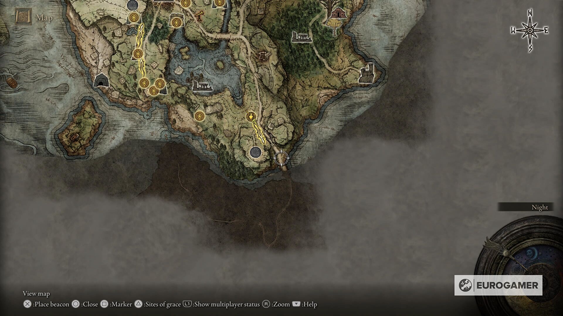 Weeping Peninsula bereik je door naar het zuiden van Limgrave gaan - het eerste gebied van Elden Ring. Net naast de Forlom Hound Evergaol ligt een brug die het schiereiland met de rest van Limgrave verbindt. De Agheel Lake South Site van Grace ligt het dichtst bij de brug en het wijst je ook de weg naar het kasteel.