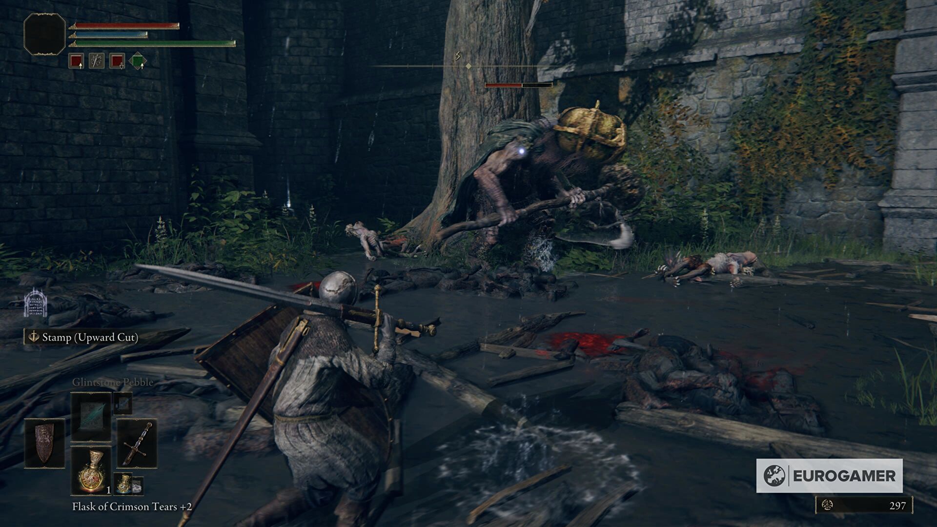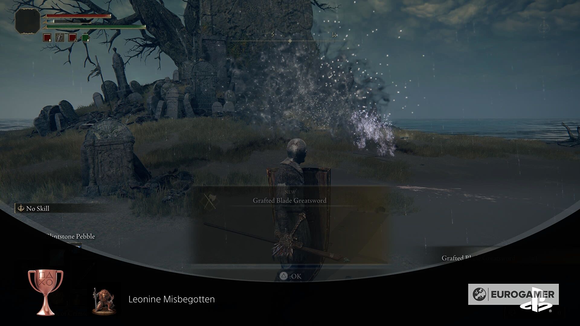 Let dus goed op de grond onder je en ga naar de poort waar de eindbaas Leonine Misbegotten op je wacht. Versla hem en de Grafted Blade Greatsword is van jou.