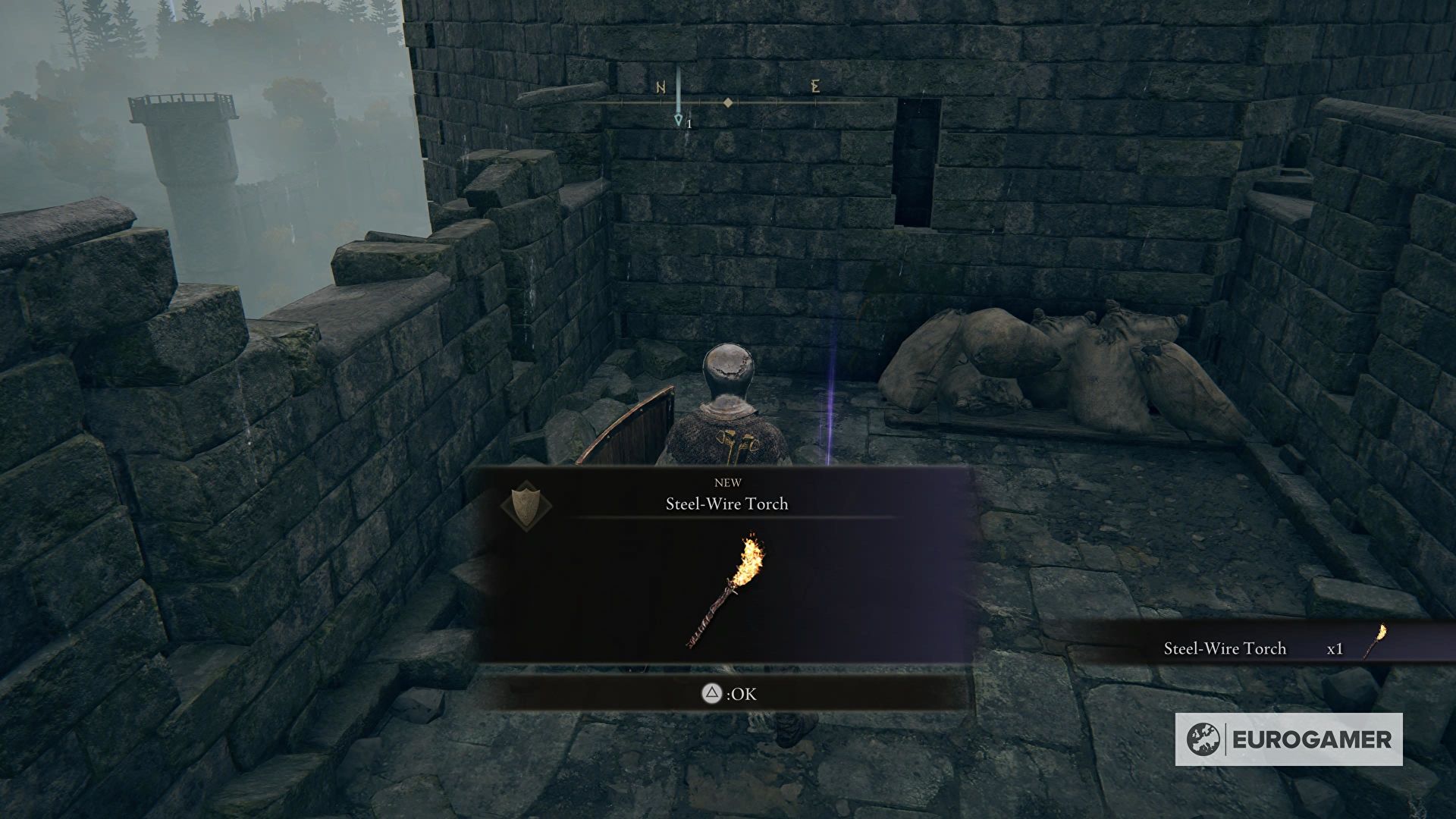 Ga nu naar het enige beschikbare pad waar twee vijanden rondhangen. Dood ze en pak de Steel-Wire Torch op.