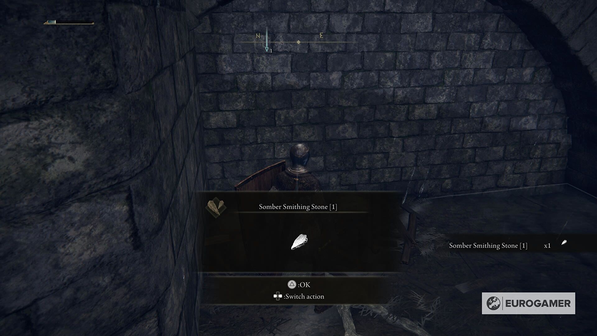 Als je in het water staat, ga dan eerst naar de achterkant van het gebouw met de ladder. Daar vind je een Somber Smithing Stone [1].