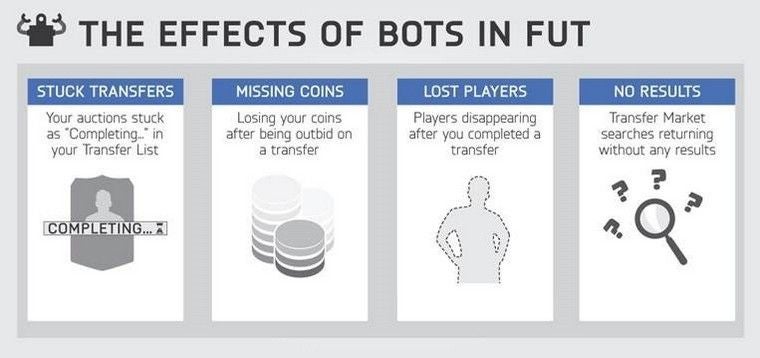 Electronic Arts zegt dat de bots de transfermarkt doorzoeken en biedingen plaatsen. Dit gebeurt op een dusdanige hoge snelheid dat het voor mensen onmogelijk is daartussen te komen. De uitgever heeft daarom de FIFA Ultimate Team Web App op 9 mei gedeactiveerd.