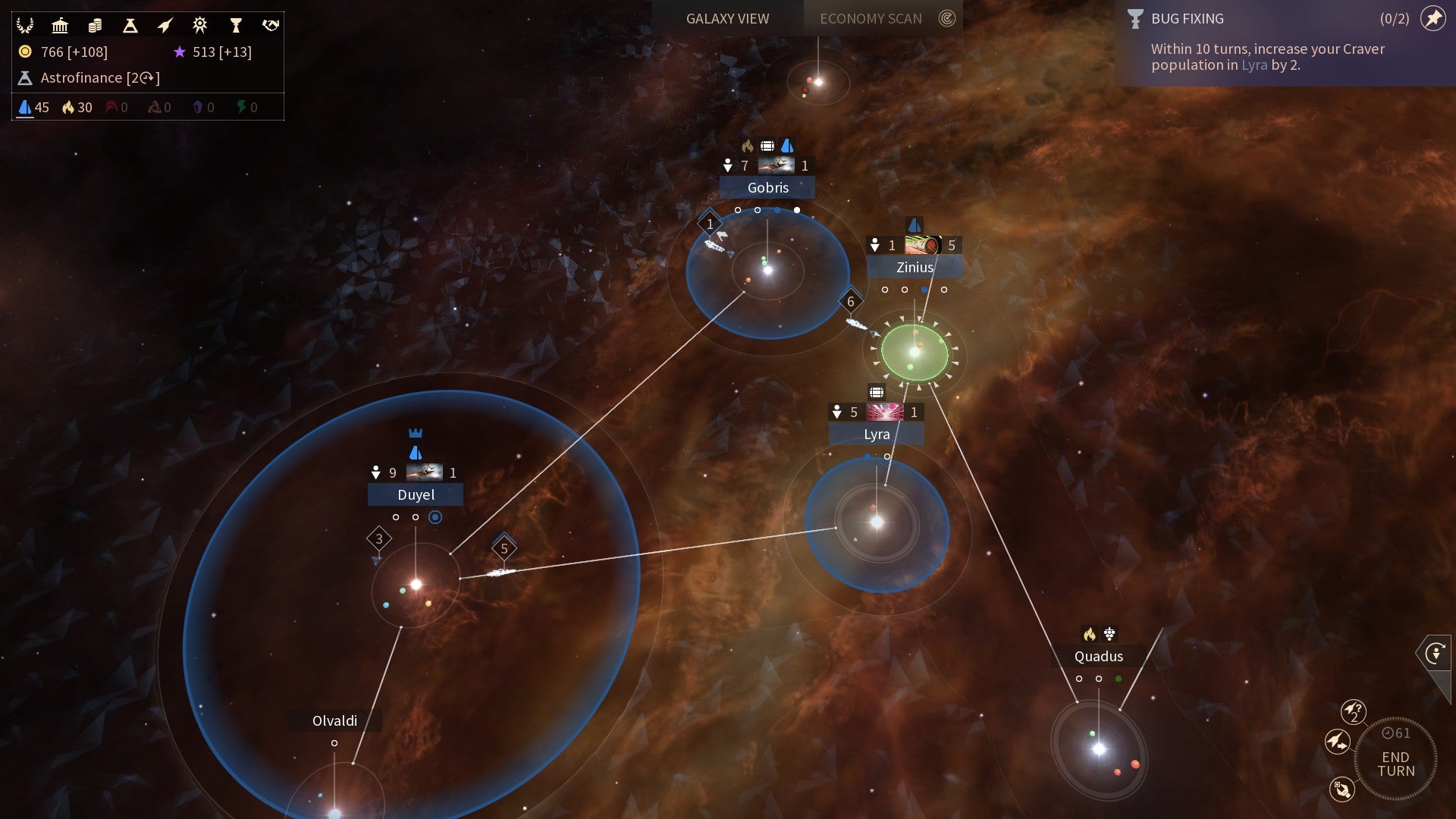 Daarnaast blijft Amplitude Studios een meester in UI-design, en dat toont de studio in Endless Space 2 door middel van de Scanview. Die functie kun je in elk scherm activeren door simpelweg op de spatiebalk te duwen. Vervolgens krijg je een heleboel achtergrondinformatie die niet noodzakelijk is om de game te spelen, maar wel de mogelijkheid biedt om je beslissingen beter te onderbouwen. Op die manier blijft de UI in de eerste plaats toegankelijk, zonder dat er aan complexiteit wordt ingeboet.