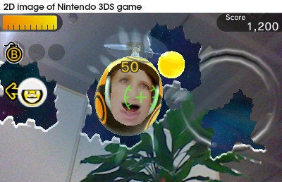 De zwevende, koddig geanimeerde gezichten vliegen daarenboven niet rond in door de ontwikkelaar ontworpen omgevingen, maar in je eigen huis! De twee lenzen vooraan op de 3DS geven op het bovenste scherm, compleet in 3D, de omgeving waarin je zit weer, en vanaf het moment dat jij op start drukt kunnen werkelijk overal gezichten verschijnen. We vielen bijna van onze stoel toen er opeens een gezicht recht door de deur van het redactielokaal gevlogen kwam, om een gapend gat achter zich na te laten.