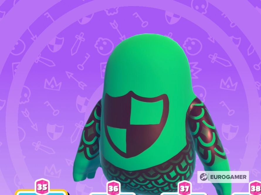 Fall Guys patterns voor Season 2, waaronder Medieval Madness, Knight en Fleur-de-lis