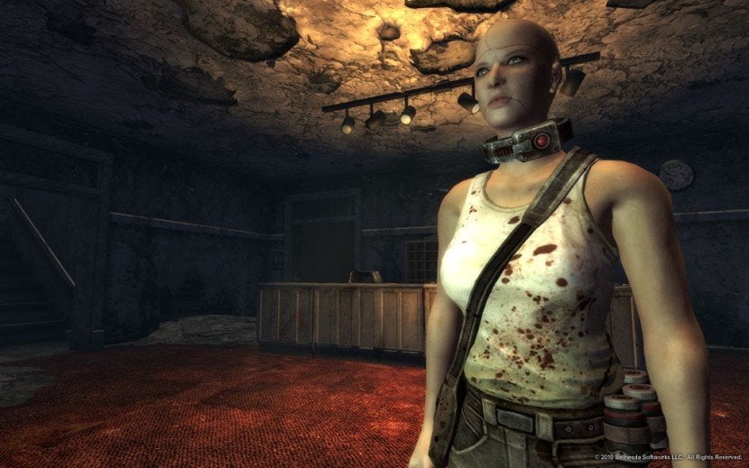 Het eerste segment van Dead Money bestaat eruit om je team samen te stellen. Denk Ocean's Eleven, maar dan met slechts drie te vinden en te rekruteren metgezellen. Elk personage zit ergens anders in The Villa verstopt, en jij mag zelf kiezen wie je eerst een bezoekje brengt. Ik ging voor Dog, een supermutant die volgens Elijah kampt met een gespleten persoonlijkheid. En inderdaad, eens aangekomen bij Dog blijkt dat er in zijn brein allerhande draadjes niet meer op de juiste plaats zitten. Hem overtuigen om zich aan te sluiten bij mij was dan ook een huzarenstukje, en naargelang je vaardigheden zal de manier waarop je dat doet verschillen. Daarna was Dean Domino, een showbizz Ghoul, aan de beurt om over de streep te trekken. Voordat deze met een zilveren tong uitgeruste lelijkaard akkoord ging om mee te helpen moest ik eerst wat opdrachten voor hem vervullen. Het rijtje maakte ik compleet door Christine op te sporen. Vreemd genoeg blijkt deze mooie dame niet enkel verminkt te zijn, ook haar stembanden hebben het begeven waardoor ze enkel met gebaren kan communiceren!