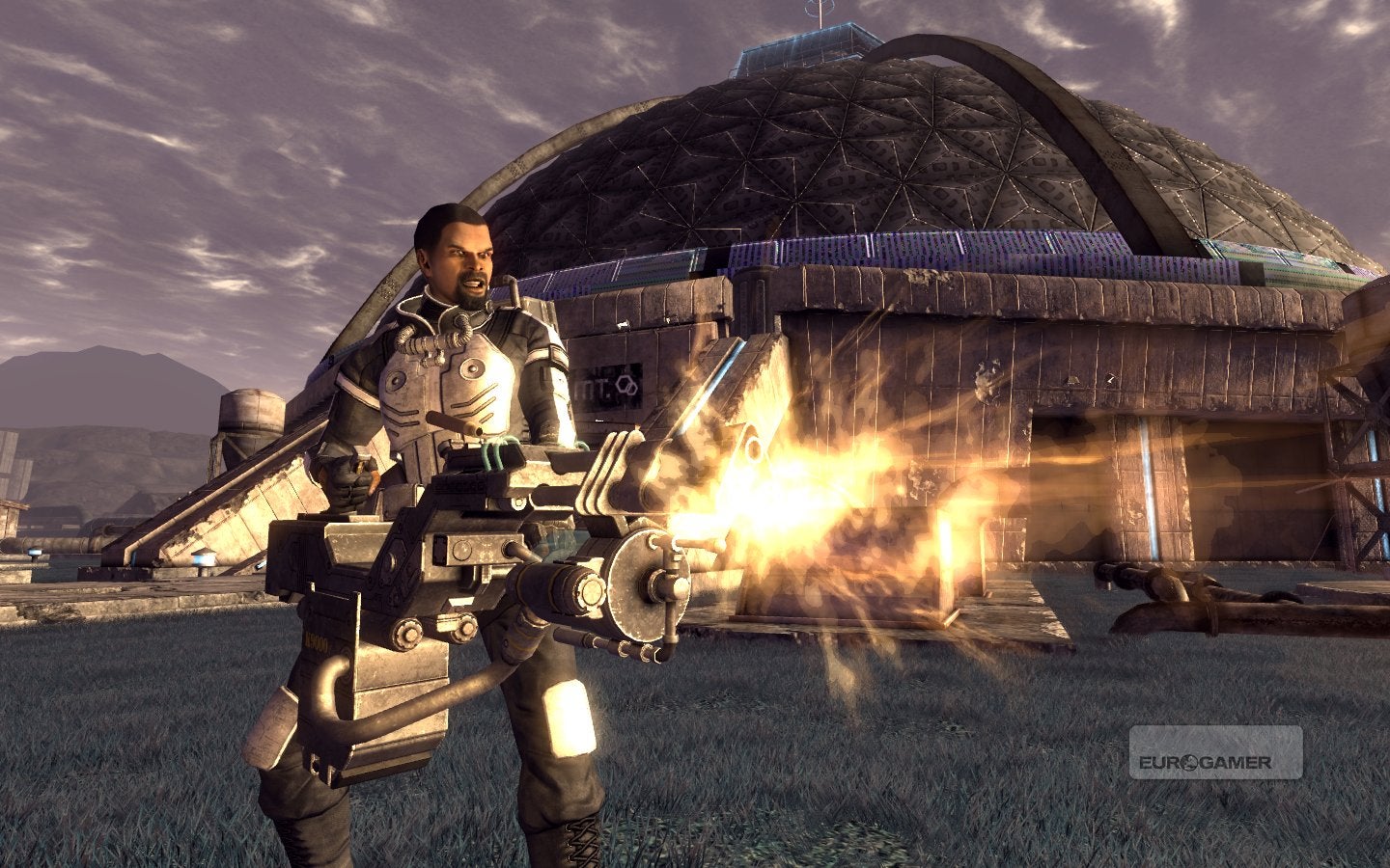 Wat meteen opvalt aan de DLC is dat deze lijkt terug te grijpen naar de uitbreidingen van Fallout 3, met name Point Lookout. Één grote open ruimte met locaties waar je rustig naartoe kunt wandelen. Toegegeven, Honest Hearts (de voorgaande DLC die van ons een acht kreeg) had dat gegeven ook wel meegekregen maar toch voelde het daar anders aan. We houden wel van deze stijl dus dat is alvast een pluspunt, mede omdat het ook past bij The Big Empty. De plaats zelf is opgebouwd uit het hoofdgebouw, The Think Tank en rondom zijn verschillende testfaciliteiten te vinden. We haalden al eerder aan dat het een soort van oud B-horrorfilm sfeertje in zich had, en nu voegen we daar specifiek een verwijzing naar Dr. Strangelove aan toe. Het resultaat kun je niet anders dan excentriek noemen. Dat op zich is toch wel het sleutelwoord van deze DLC, excentriek.