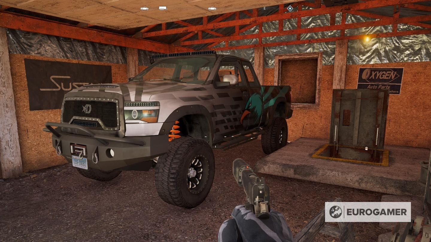 Vanaf nu heb je de 2012 Kimberlite TCZ truck (met speciaal kleurtje) ter beschikking. Je kan deze bestellen op elk car request point (zoals die dat net buiten deze garage ligt). Vergeet ook zeker niet de gebruikelijke munitie, resources, dollars en perk points mee te nemen voordat je vertrekt..