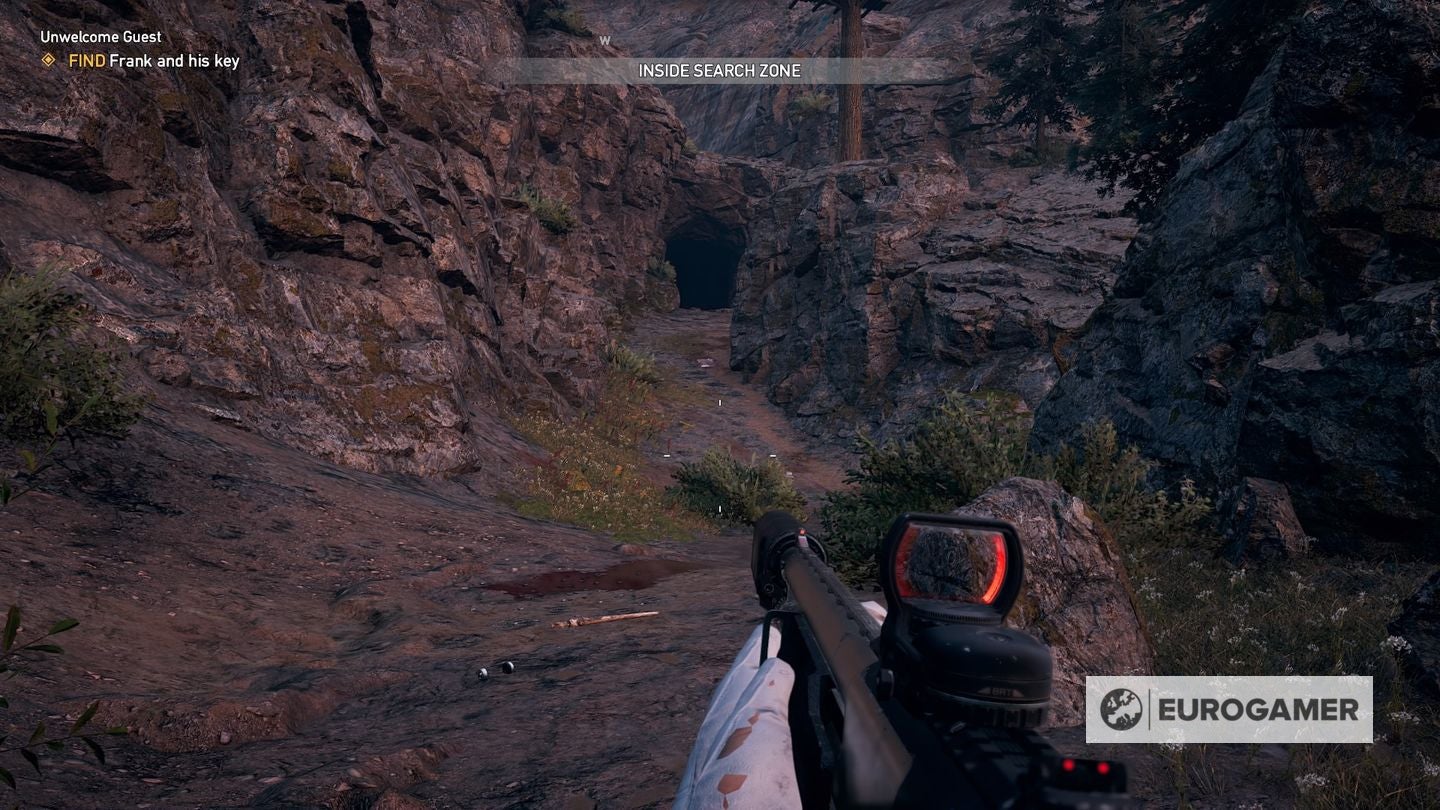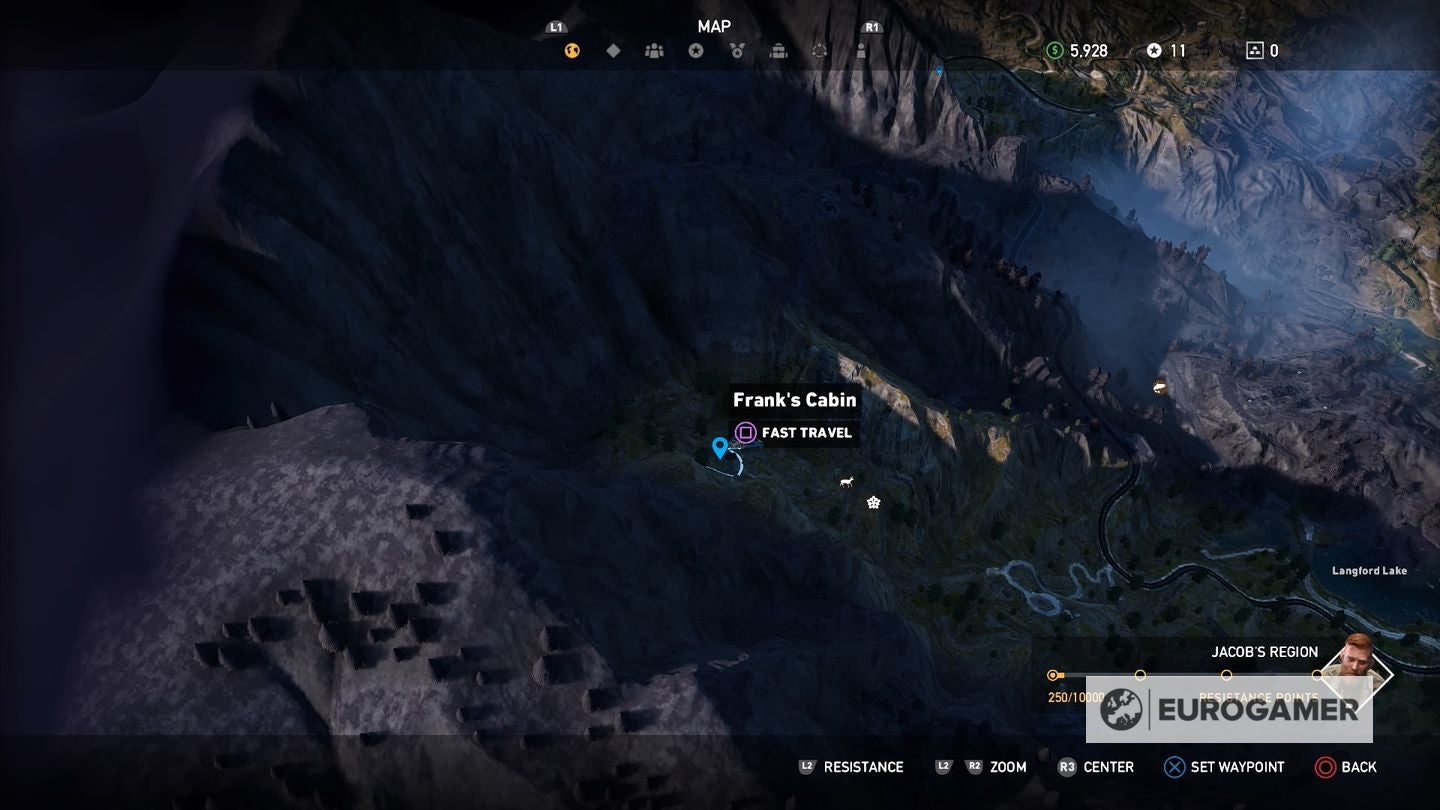 Frank's Cabin ligt in het meest westerlijke punt van de map en is de plek waar een dodelijke ontmoeting met een van Hope County's meest gevaarlijke roofdieren heeft plaatsgevonden.