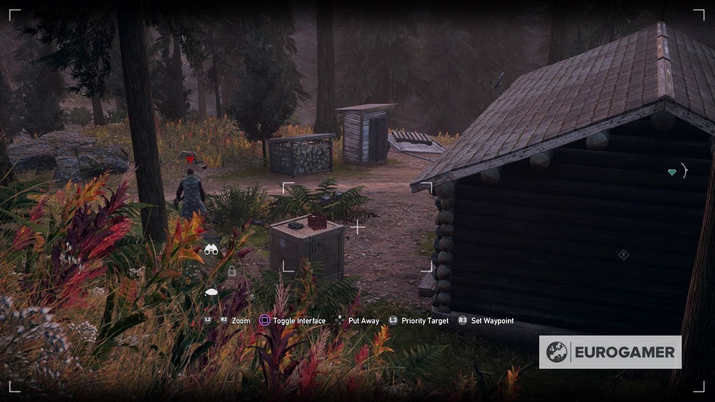 Maak je klaar voor een pittige wandeling en een bergbeklimming om bij deze Prepper Stash te komen. Benader het huisje vanaf de autoweg, waardoor je achter het huisje komt. In de buurt ligt een eenzame sniper met een jachtboog op de loer.