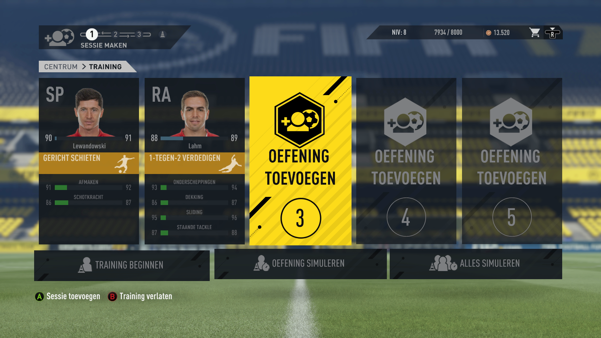 Je kunt die sessies zelf spelen (vergelijkbaar met de Skill Games), maar die zijn afhankelijk van de oefening moeilijk en vooral tijdrovend. Je kunt de training ook laten simuleren, waarbij de spelers goed, slecht of middelmatig oefenen.