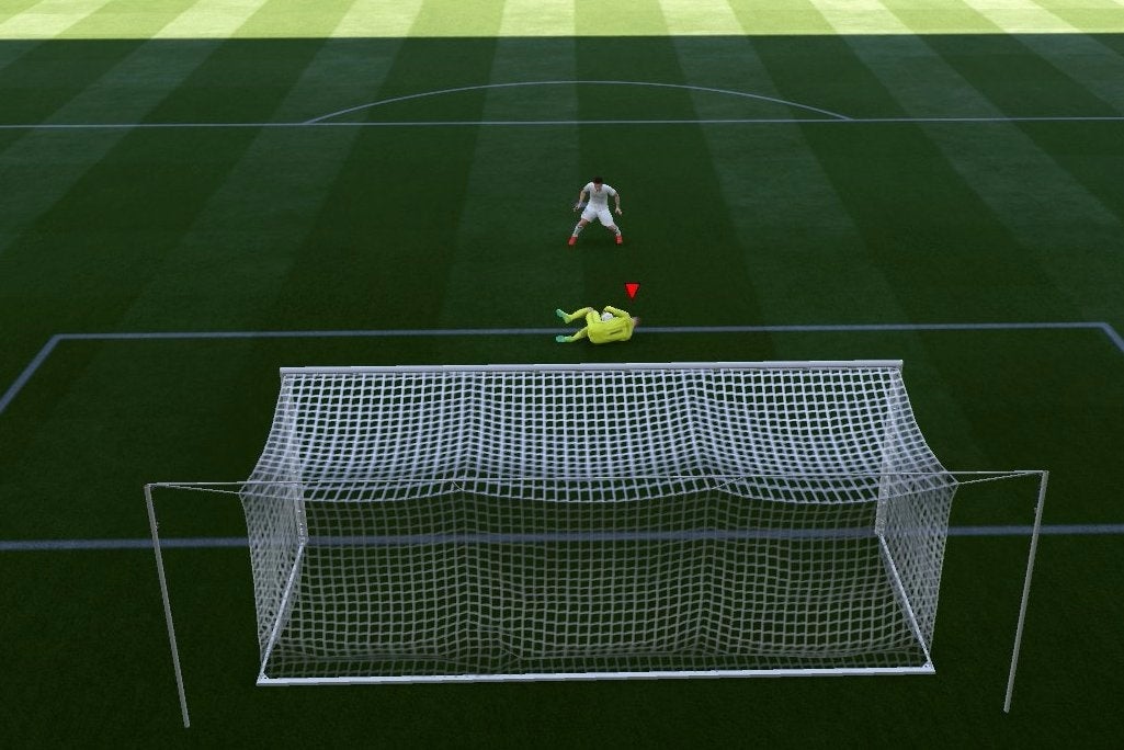 Als je op de linkerschouderknop drukt, beweegt je keeper automatisch naar de positie die de game je aanraadt. Je kunt echter ook vrij rondlopen, als je dat wilt. Als een tegenstander een schot op het doel lost, druk je zoals bij een penalty de rechterstick (of A, X + richting) in een bepaalde richting om een save uit te voeren. Timing is daarbij heel erg belangrijk, want als je te vroeg of te laat springt, vliegt de bal in het doel.