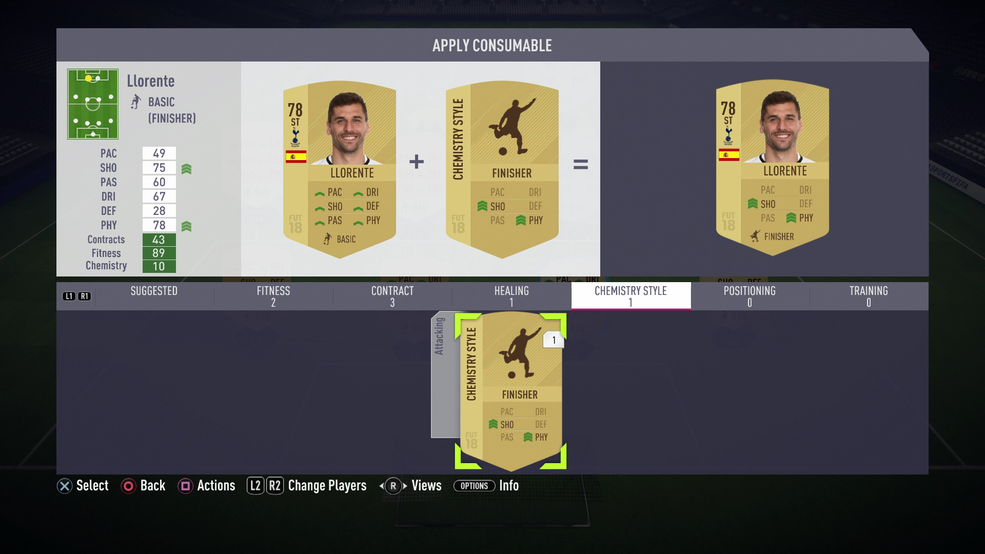 Om dat toegevoegde effect van Chemistry Style bij je speller te krijgen, moet die speller een Individual Chemistry hebben van minstens 5 op 10. Dit getal vindt je onder de balk onder de spelersfoto in één van de secundaire FUT Squad menu's. Bij 4/10 blijven de attributen neutral. Elk getal lager dan 4 betekent dat alle attributen van die speller zullen dalen. Je kan meer lezen over het verhogen van Individual Chemistry in onze special guide.