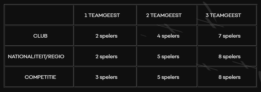 Met beide spelers op hun favoriete positie én van dezelfde club is een van de drie Teamgeest-drempels bereikt, namelijk twee spelers van dezelfde Club (zie boven). De spelers krijgen nu allebei 1 Teamgeestpunt.