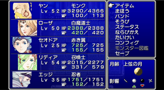 Het blijkt echter een valstrik te zijn: ongewild vernietigt Cecil het dorpje (dat niet toevallig een centrum van de summoners was) en al zijn bewoners. Een klein meisje overleeft de aanval, en Cecil neemt haar onder zijn hoede. Van hieruit begint het verhaal echt, en geleidelijk aan bouw je ook een party op. Maar meer verklap ik niet. Dat het iets met de kristallen te maken heeft, en dat je de wereld zal moeten redden spreekt voor zich...