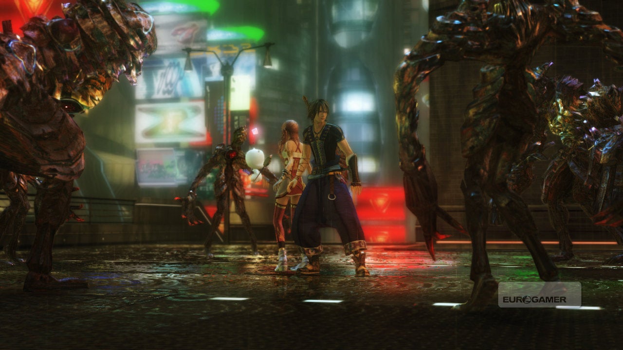 Het battlesysteem is hoofdzakelijk hetzelfde. Serah en Noel zijn nu, voor zover we tot nu toe weten, de enige personages die je in je party kunt steken. Het plaatsje dat overblijft in je party wordt ingevuld door een monster dat je verslaan en vervolgens gevangen hebt. Dat getemde monster kun je upgraden en levelen met bepaalde items en elk monstersoort heeft zijn eigen specifieke kenmerken en rol dat ie kan spelen. Voor de rest gebruikt Final Fantasy XIII-2 nog steeds hetzelfde Paradigm Shift-systeem.