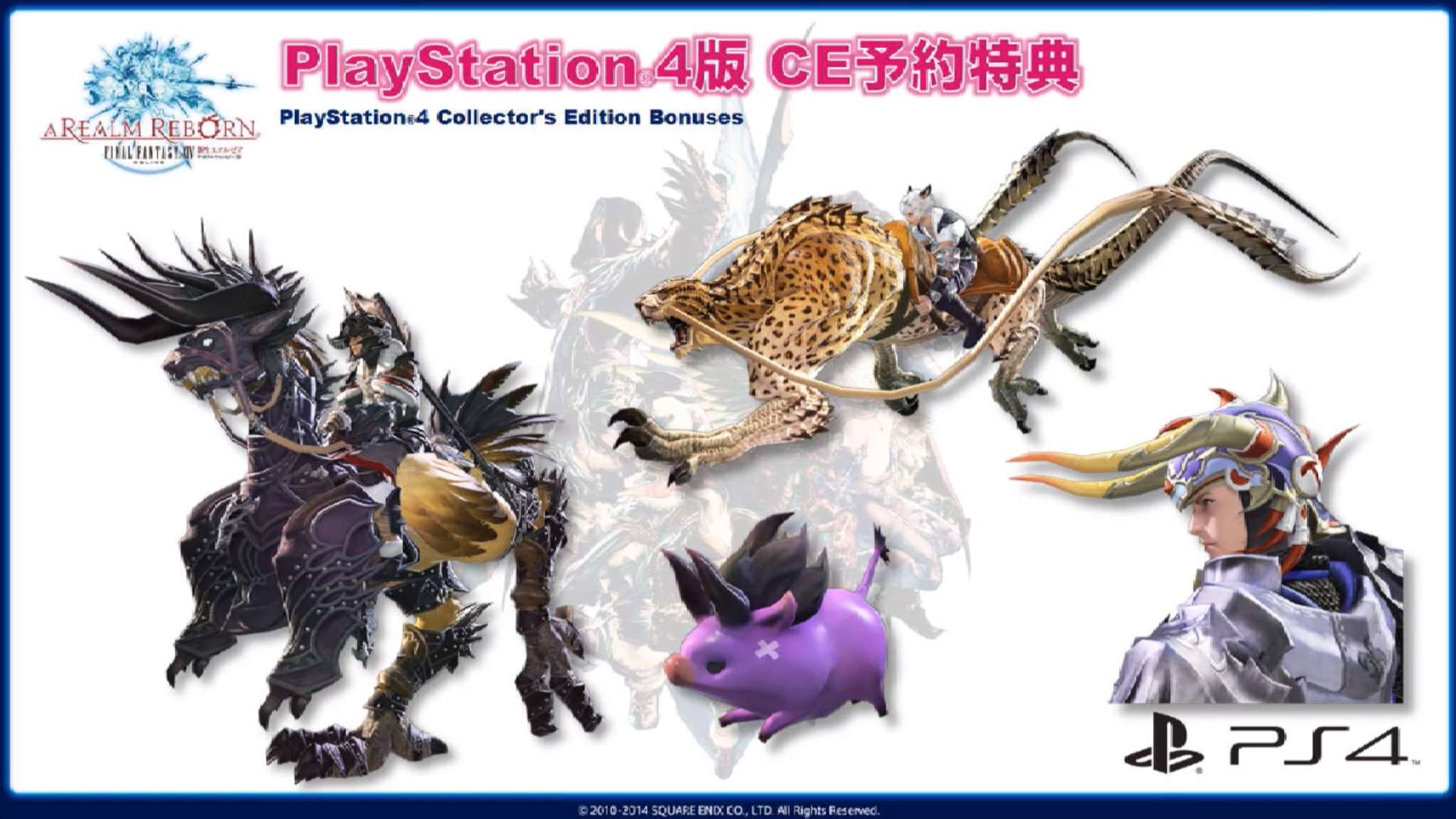 De MMORPG krijgt een aparte Collector's Edition, met daarin een Fat Chocobo Mount en een Wind-up Moogle Minion (zie onder). Daarnaast bevat deze versie ook alle bonussen van de pc/PlayStation 3 Collector's Edition van Final Fantasy XIV. Voor de gamers die reeds in het bezit zijn van die versies, worden de nieuwe Mount en de Minion gratis beschikbaar gesteld.