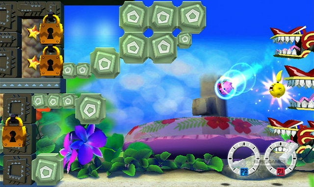 Dat laatste concluderen we gezien je door de opzet van het spel automatisch in het wilde weg gaat rondzwaaien om gewoon zoveel mogelijk punten te sprokkelen. Er zijn momenten waarbij je verplicht precieze bewegingen moet maken – zoals bijvoorbeeld stukjes waar de Wiimote ingame een slagknuppel voorstelt -, en dat zijn meteen ook de leukste momenten binnen FlingSmash. Ook binnen de acht minigames die je gaandeweg vrijspeelt krijg je aanmoediging om wat meer na te denken over welke slagbeweging je maakt, en we betrapten ons erop dat we eigenlijk liever met de korte activiteiten aan de slag gingen dan de eigenlijke levels. Hetzelfde gevoel bekroop ons tijdens de confrontaties met de eindbazen. Deze grote monsters hebben namelijk elk een zwak punt, en het is precies daar waartegen je je balletje moet lanceren. Om uit te werken hoe je dat in de praktijk gaat doen is wat licht denkwerk nodig, en dat wisten wij wel te appreciëren. Alleen blijft het spanningsniveau op een laag pitje doordat je haast geen consequenties zult ondervinden wanneer zo'n eindbaas je schade - lees: naar links duwt - toebrengt.