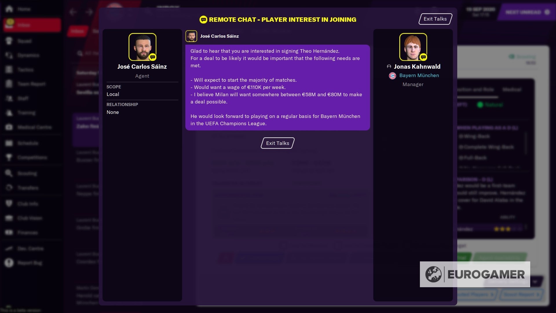 Een bijzonder onderdeel daarvan is de 'Agent availability'. Je belt een spelersmakelaar op en die vertelt je meteen de verwachtingen bij een transfer, zoals de transfersom, het loon en of de speler tevreden is met een reserverol. Dat verschaft je duidelijkheid, omdat je vroeger tijdens contractonderhandelingen vaak onaangename verrassingen had. De functionaliteit is grotendeels accuraat, met cijfers die uiteindelijk het gemiddelde zijn van de uiterste bedragen. Van de toevoegingen qua interactie is het makelaarsgesprek op het eerste gezicht de intelligentste, want ook een uiterst handige aanvulling op de Recruitment Meeting.