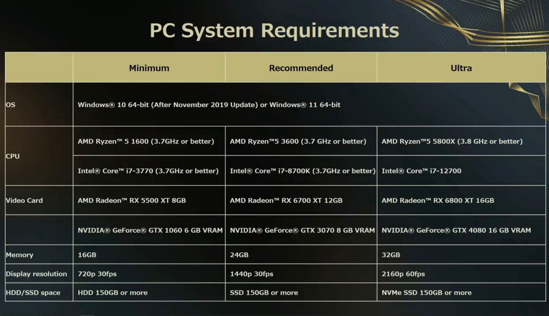 Uitgever Square Enix heeft de systeemvereisten van de pc-versie van Forspoken tijdens een livestream van ontwikkelaar Luminous Productions bekendgemaakt. De vereisten zijn als volgt: