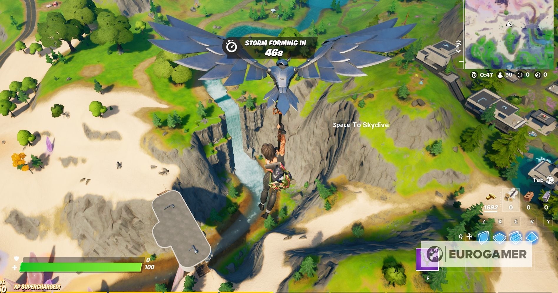Gorgeous Gorge is de makkelijkste landmark om voor deze Fortnite challenge te vinden, omdat het onderaan de waterval bij Hunter's Haven en Lazy Lake ligt.