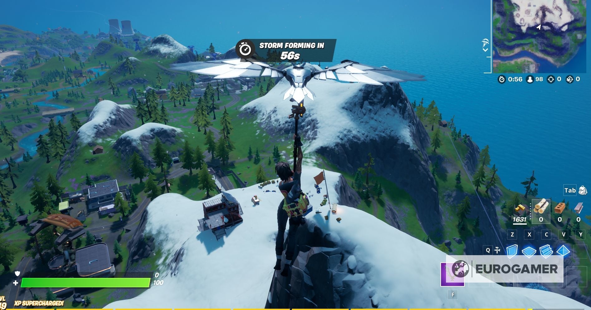 De gemakkelijkste manier om dit deel van de challenge af te ronden, is door te landen op de top van Mount Kay, die door een vlag gemarkeerd wordt.