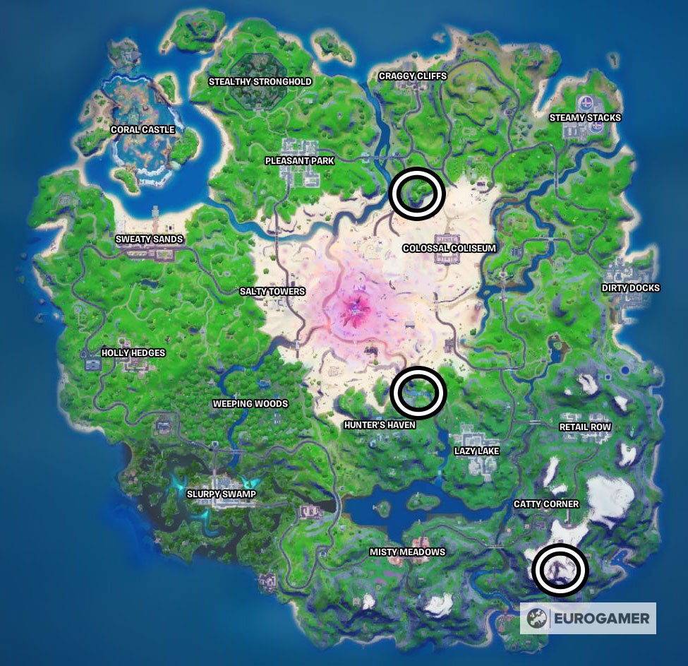 Alledrie van deze locaties zijn landmarks, wat betekent dat ze niet op de Fortnite map voorkomen, waardoor ze lastiger te vinden zijn als je niet weet wat je moet zoeken.