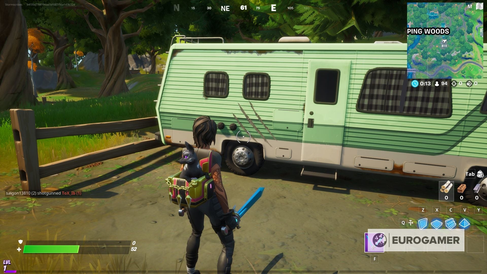 Als je in de Weeping Woods bent aangekomen, dan is het aangeraden om de eerste claw mark te zoeken in het RV park, die plek vind je in het meest zuidoostelijke deel van het bos.