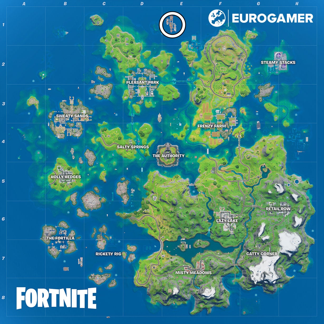 Door het overstromen van de Fortnite map is de Yacht verplaatst naar de meest noordelijke plaats op de map. Je vindt de Yacht nu in vakje E1. Dit is ten noorden van wat er nog overblijft van Pleasant Park en Craggy Cliffs.